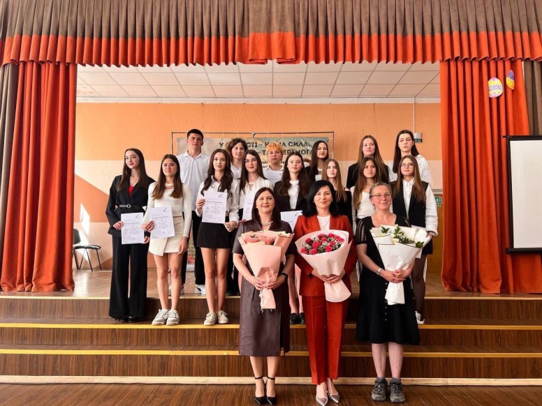 Die Honorarkonsulin Österreichs Liudmyla Osatschuk und die stellvertretende Direktorin für Fremdsprachen Romana Fysiuk nahmen an der feierlichen Verleihung der Deutschen Sprachdiplome (DSD II) Niveaustufe B2/C1 an die Absolventen unseres Lyzeums teil.