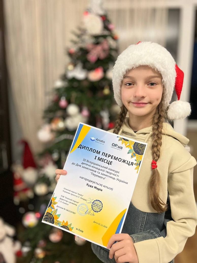 Завершився ІІІ Всеукраїнський конкурс дитячо - юнацької творчості до Дня захисників та захисниць України "Перемога". Учениця 3-А класу Худа Марія виборола І місце.